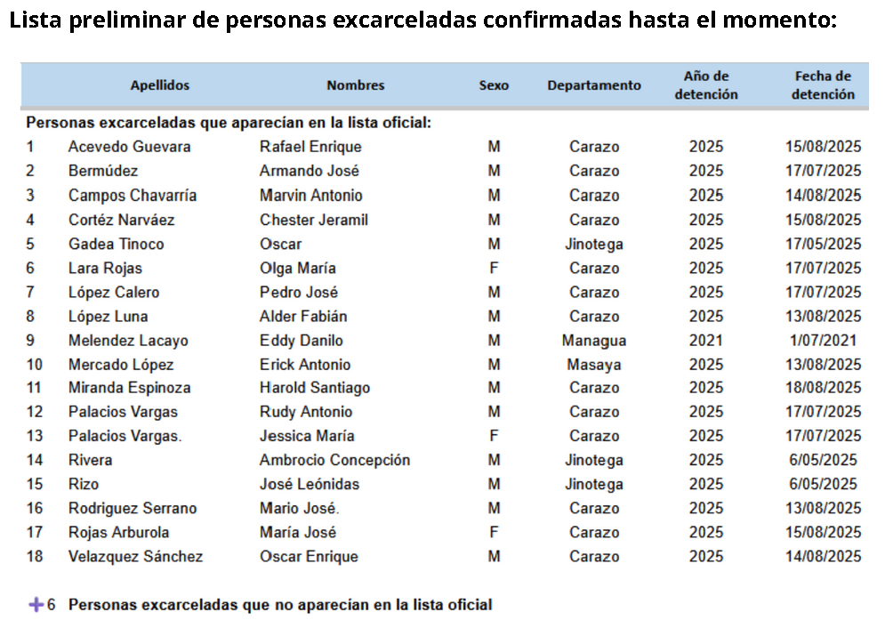 Se continúa monitoreando este proceso y verificando información sobre posibles nuevas excarcelaciones.